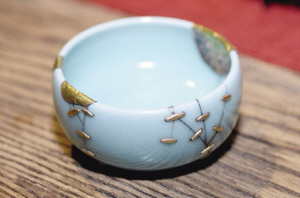 東京博物館藏一只南宋龍泉碗上六只形如螞蟥的鋦釘,為明代工匠的手藝,日本人稱螞蟥伴碗。鋦瓷起于何時(shí)無(wú)法考證,李時(shí)珍在《本草綱目》第十卷《石部四》中提到金剛鉆,其砂可以鉆玉補(bǔ)瓷,“故謂之鉆”。清代,賞花弄鳥(niǎo),“玩瓷藏玉”的八旗子弟,由單一的鋦補(bǔ)轉(zhuǎn)為鋦補(bǔ)修復(fù),嵌飾做件,鑲色配飾等風(fēng)格特異,藝術(shù)魅力獨(dú)特的一門(mén)絕活技藝,稱之為“鋦活秀”。