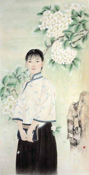 她的《清夏》《女大學生》《清風雅集》《夏趣》,以嫻熟的筆墨勾畫出個性鮮明的人物,色彩溫馨和諧,線條細膩生動,詩情畫意充盈其間。