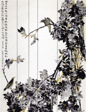 我認(rèn)為,袁愛清寫意花鳥畫之獨(dú)特魅力,首先得益于他的個(gè)性氣質(zhì)。生活中的袁愛清,雖然性格豪爽,但他的氣質(zhì)卻不粗糙。他放得開也收得攏,拿得起也放得下,他愛酒,酒代表他豪爽剛健的一面;他愛茶,茶代表他的細(xì)膩幽遠(yuǎn)的一面,卻又好比他大刀闊斧的布局、沉穩(wěn)細(xì)膩的收攏,兩者互為支撐相得益彰。