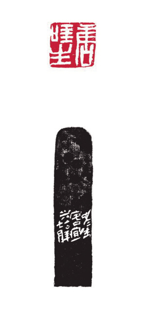 與其他印家一樣,詠聲先生印章邊款大多為小楷單刀款。但其印作中如《他山之石可以攻玉》《工者心苦》《書無百日工》《無心即散人》《天下事可無酒》等,以甲骨文、金文、小篆、繆篆等入款,且講究布局的形式構(gòu)成,以及刀法對線條的表現(xiàn)。尤其是幾枚以甲文入款的作品,形成了磚瓦石銘的古樸之趣。