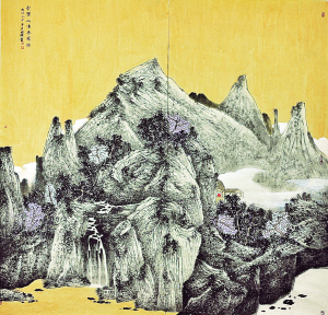 “筆墨當隨時代”,作為70后畫家,王國鋒的山水畫自然有著他這一代畫家的特點:既根植傳統(tǒng),又勇于創(chuàng)新。他的藝術之路,既平常又亮點頗多。王國鋒告訴我,出生于太行山脈腳下的他,早年受叔叔影響喜歡上了繪畫。后由于種種原因,他曾中斷繪畫數(shù)年,直到2014年,強烈的繪畫欲望再次被點燃,他毅然辭去了工作,先后就讀于中國人民大學藝術學院和清華大學藝術學院“武劍飛寫意重彩研修班”。
