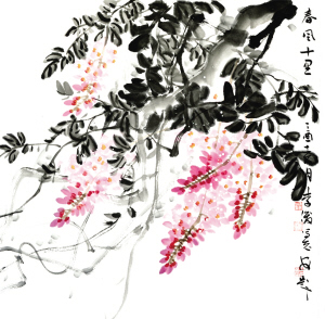 李俊以激情洋溢的詩人氣質(zhì),營造筆下的紫藤世界,是其個(gè)人性情所致。創(chuàng)作時(shí),他將自然之情、生活之情,融化為一個(gè)獨(dú)特的審美世界,使畫面呈現(xiàn)出一片生機(jī)勃勃、欣欣向榮的景象。李俊為人謙和、純樸率真,和他交流,見解獨(dú)特,豁達(dá)大度,就像他畫幅中那清新的風(fēng)格,那春風(fēng)溢蕩,蝶花入勝的景境,有一股淡淡的清香。
