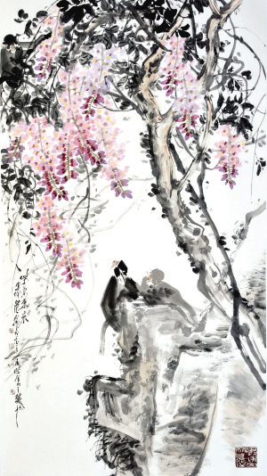 縱觀李俊的紫藤畫,不但具有濃厚的抒情風(fēng)格,而且還有對(duì)現(xiàn)實(shí)生活的關(guān)切之情。李俊希望通過他筆下營造的美好作品,帶給人們一點(diǎn)心靈慰藉。為此他在作品里傾注了自己的全部情感,精心打造他的紫藤世界,由此折射出一位畫家的心靈世界和責(zé)任擔(dān)當(dāng)。