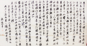 不過,追求既有快樂也有痛苦,熟知蘭德軍的人都知道,他在書法藝術(shù)上取得的成果,既得益于他掌握了正確的學(xué)習(xí)方法,也取決于他的勤奮。他不僅每日“聞雞起舞”臨習(xí)《蘭亭序》《蜀素帖》《自敘帖》以及二王手扎、尺牘等都在數(shù)小時以上,還寫下了數(shù)十篇的讀書隨筆。為了創(chuàng)作一幅參展作品,他往往用毛筆蠅頭小楷或小行草書寫萬余字的作品,洋洋灑灑,蔚為壯觀。