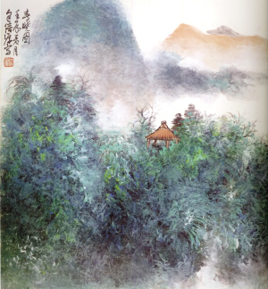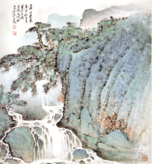 賈德江認(rèn)為,包信源水墨寫意和青綠重彩雙翼齊飛,成為既是延續(xù)傳統(tǒng)型的全能畫家,又是富有現(xiàn)代氣質(zhì)的創(chuàng)新畫家,給古老的中國山水畫藝術(shù)注入了新的活力和氣象。