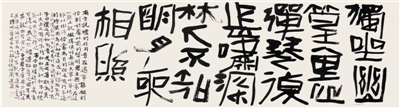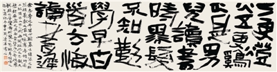 其實,和許多成功的藝術(shù)家一樣,周建軍的成長,有其自身的社會環(huán)境。出生于河南中州的他,一直慶幸自己生于此長于此,又棲居于此。不是嗎,這里純樸的風(fēng)情,火熱的現(xiàn)代生活,滋潤著中原的書法園地,也滋潤著周建軍的心田。與大都市相比,這里多了幾分寧靜,少了幾分喧囂,更能使他安靜下來,慢慢梳理自己的思緒,把如水般的心境融進(jìn)自己的書法創(chuàng)作中去。所以,長期以來,周建軍不為世俗逐浮華,甘愿孤獨悟墨香。