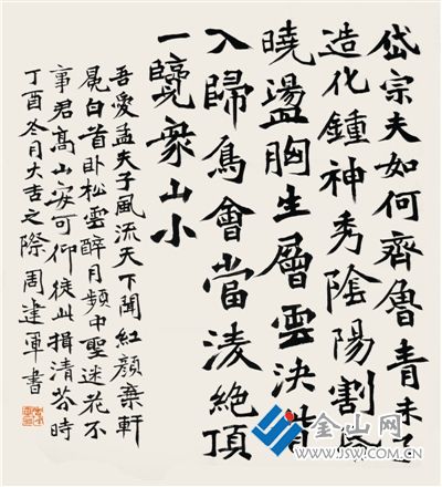令人敬佩的是,作為書法的執(zhí)著追求者,周建軍于書法的學(xué)習(xí)態(tài)度也極為認(rèn)真,他差不多是看懂一家練一家,一家也不舍得放過,并且一定要寫到形神兼?zhèn)洳趴狭T休。同時,他還通過練習(xí)、總結(jié)、再舍棄、保留等環(huán)節(jié),反復(fù)循序漸進(jìn)。特別是他創(chuàng)作時,即使很多次獲獎的字體,在不同時期,周建軍也都有所不同,所以每每能得到同道的贊嘆和表揚。