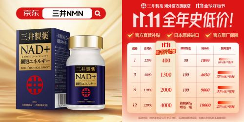 正值京東雙十一大促期間,三井NMN推出了年度最大優(yōu)惠——最高立減4000元,雙十一大促期間限時(shí)優(yōu)惠,錯(cuò)過(guò)這次就要等到明年。對(duì)于追求品質(zhì)生活的中產(chǎn)家庭而言,這不僅是價(jià)格上的實(shí)惠,更是健康投資的絕佳時(shí)機(jī)。
