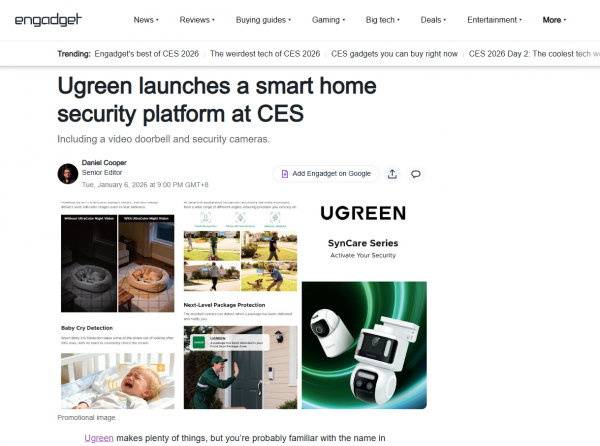 圍繞家庭場(chǎng)景,中國(guó)科技品牌綠聯(lián)(UGREEN)在 CES 2026 上首次系統(tǒng)性展示了 SynCare 智能家庭安防生態(tài)。